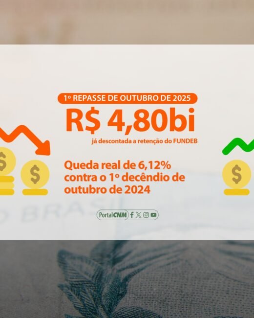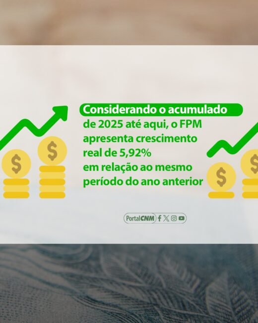 Ao comparar o 1º decêndio de outubro de 2025 com o mesmo período do ano anterior, o valor apresentou uma queda nominal de 2,27%. Apesar da retração no decêndio, o FPM no acumulado de 2025 (incluindo os repasses extras de 1% de julho e setembro) registra um crescimento nominal de 11,35% em relação ao ano passado, representando um acréscimo de mais de R$ 18,5 bilhões.