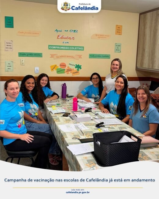 A campanha de avaliação das carteirinhas e atualização vacinal nas escolas de Cafelândia já está em andamento e segue até o mês de maio. A iniciativa tem como foco verificar e garantir que alunos com menos de 15 anos estejam com a vacinação em dia 🧒👧.