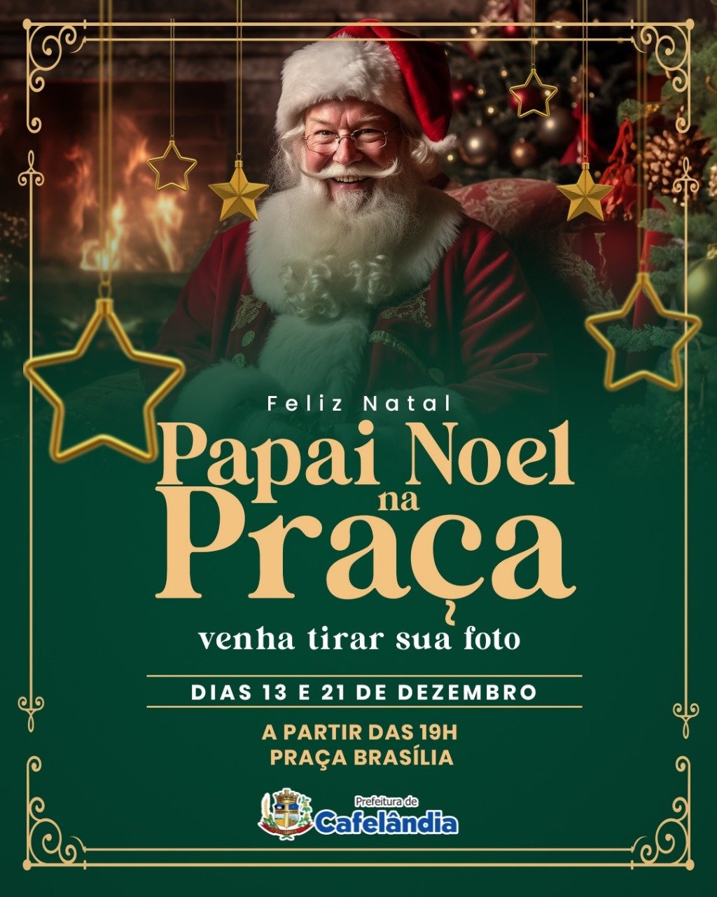 Prepare a pose, porque o Papai Noel estará na Praça na “casinha verde” esperando por você e sua família para tirar aquela foto inesquecível! Um momento especial para guardar no coração.
