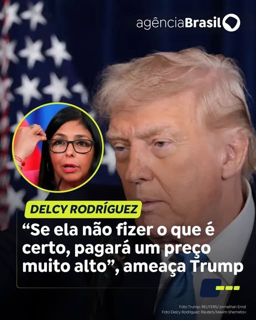 ATAQUE | Em entrevista, neste domingo (4), a uma revista americana, o presidente dos Estados Unidos, Donald Trump, afirmou que a vice-presidente venezuelana, Delcy Rodríguez, pode pagar um preço maior do que o líder capturado Nicolás Maduro “se ela não fizer o que é certo”.