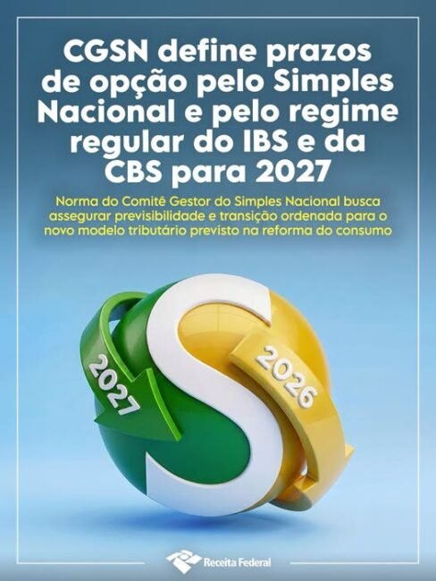 Nesse mesmo período de setembro, todas as empresas optantes pelo Simples Nacional também decidem se o IBS e a CBS serão pagos dentro do Simples ou por fora, pelo regime regular.