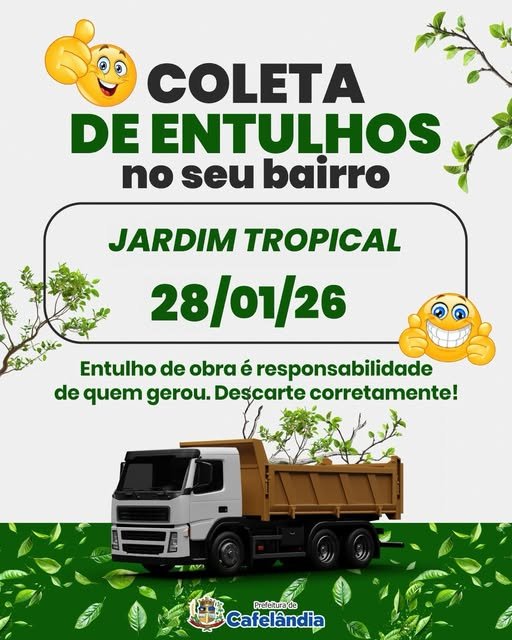 A coleta de entulhos e lixo verde no seu bairro acontece nesta quarta-feira, dia 28/01. 🚛♻️