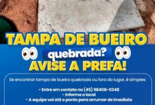 Viu tampa de bueiro quebrada ou fora do lugar? Avise a Prefa!