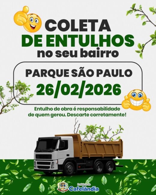 Atenção, moradores! Nesta quinta-feira, 26/02/2026, a equipe estará no bairro realizando a coleta de entulhos.