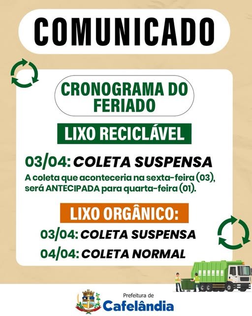 Fique atento ao cronograma de coleta neste feriado em Cafelândia! ♻️