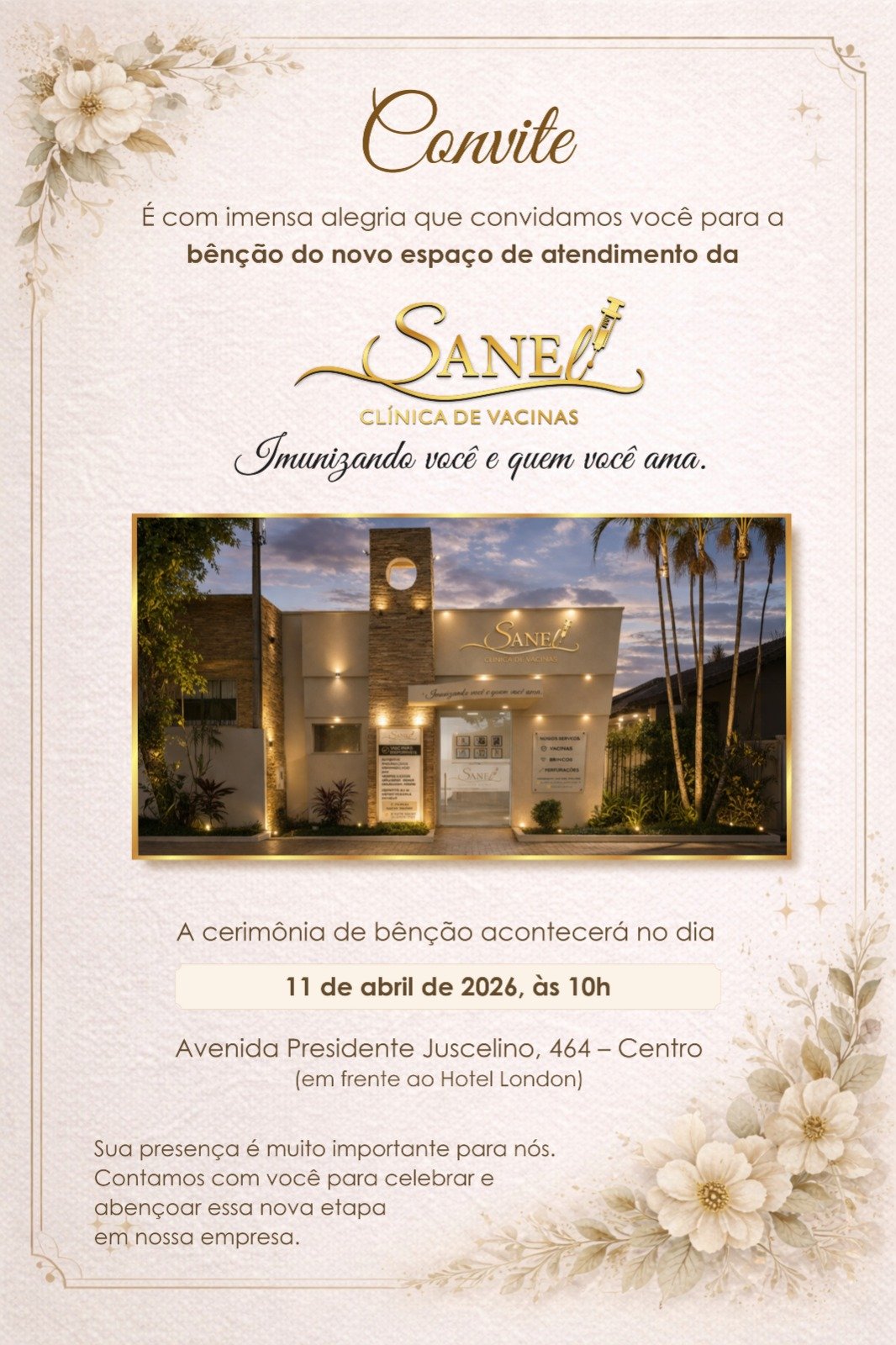 A CERIMÔNIA DE BENÇÃO VAI ACONTECER DIA 11 DE ABRIL DE 2026 ÀS 10 HORAS – CENTRO NA AVENIDA PRESIDENTE JUSCELINO, 464 – CAFELÂNDIA – PARANÁ