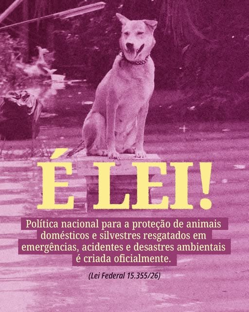 Foi sancionada aLei 15.355/26, que institui a Política de Acolhimento e Manejo de Animais Resgatados (Amar), ação voltada à proteção de animais atingidos por acidentes e desastres. A iniciativa será executada de forma articulada pela União e pelos Estados e Municípios e deverá ser incorporada aos planos de contingência da Defesa Civil em todo o país.