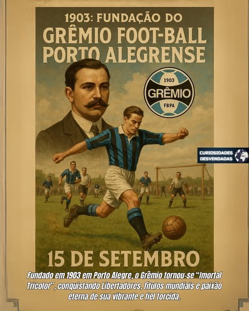 Em 15 de setembro de 1903, nasceu em Porto Alegre um dos clubes mais tradicionais do futebol brasileiro: o Grêmio Foot-Ball Porto Alegrense. A fundação aconteceu quando um grupo de jovens, liderados por Cândido Dias da Silva, apaixonado por futebol, reuniu amigos para criar uma equipe organizada. Curiosamente, a bola usada no primeiro treino foi adquirida de um jogador inglês que passava pela cidade.