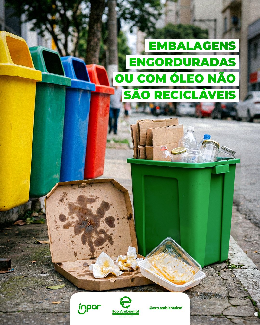 Quando o papel, papelão ou plástico estão contaminados com gordura, o material perde a qualidade e pode comprometer todo o processo de reciclagem 😕