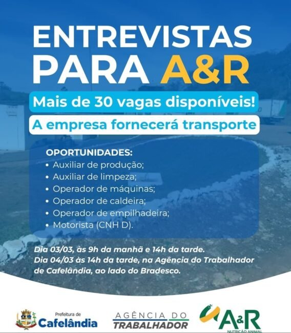 • ENTREVISTA PARA A&R – MAIS DE 30 VAGAS