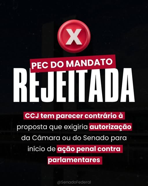 Está rejeitada pelo Senado a Proposta de Emenda à Constituição (PEC) 3/2021 que exigiria autorização de deputados e senadores para ação penal contra parlamentares. A Comissão de Constituição e Justiça (CCJ) aprovou, por unanimidade, relatório do senador Alessandro Vieira (MDB-SE) pela rejeição da proposta, que será arquivada. A PEC havia sido aprovada na semana passada pela Câmara dos Deputados. Saiba mais https://www12.senado.leg.br