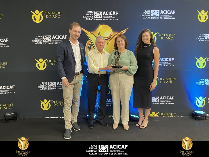 No dia 11 de abril, o Município de Cafelândia foi palco da premiação dos Destaques 2025, evento promovido pela ACICAF – Associação Comercial e Industrial de Cafelândia, realizado na Aercol.