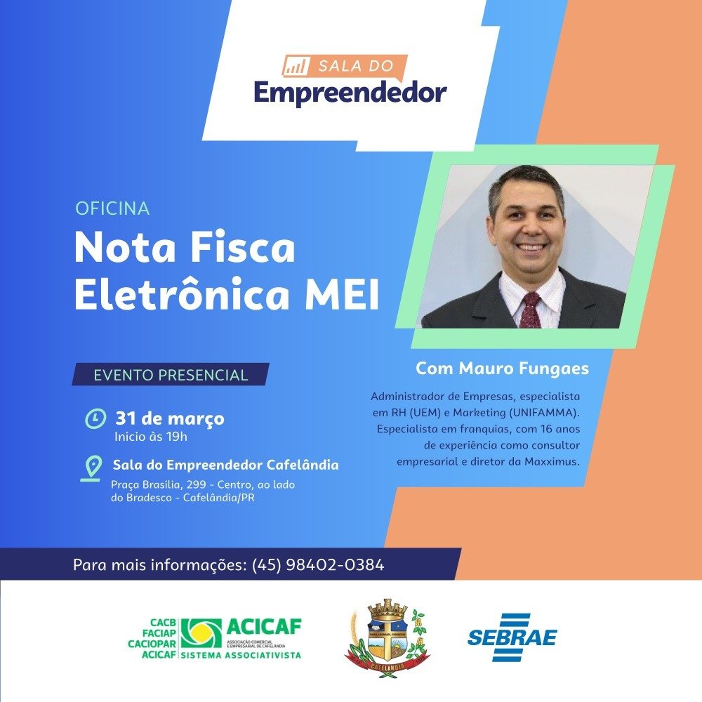 (HOJE) – A Reforma Tributária chegou! Você já sabe como vão ficar as suas notas fiscais? Recentes 31 de março de 202630 de março de 2026Paulo Jaskowiak A Reforma Tributária chegou! Você já sabe como vão ficar as suas notas fiscais? Participe da nossa oficina prática e não fique para trás.📅 Terça-feira (31/03)📍 Local: Sala do EmpreendedorVagas limitadas! Bora se atualizar?