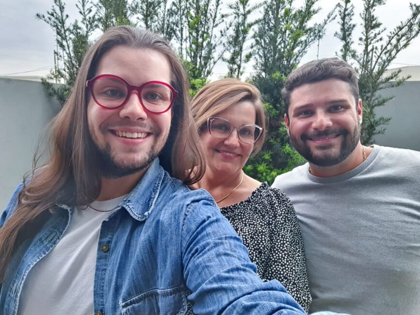 Os filhos Lucas e Felipe desejam um feliz aniversário à mãe, Marli Scherpinski.