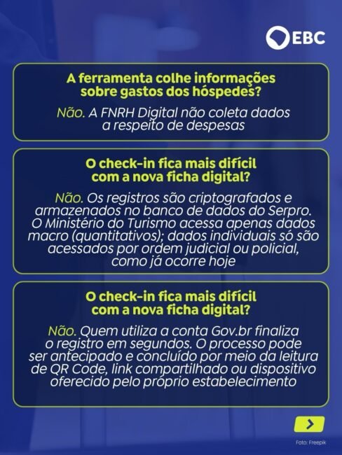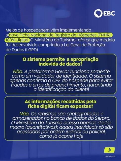 A pasta reforça que o novo sistema, que utiliza a plataforma Gov.Br, cumpre rigorosamente a Lei Geral de Proteção de Dados (LGPD). Segundo o governo federal, essa integração funciona somente como um validador de identidade, para confirmar o CPF do hóspede e evitar fraudes e erros de preenchimento.