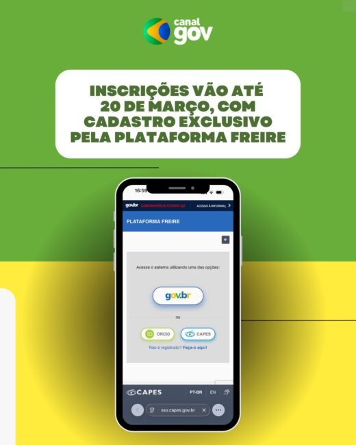 INSCRIÇÕES ABERTAS PARA O PÉ-DE-MEIA LICENCIATURAS | O Ministério da Educação abre nesta sexta-feira (20/2) as inscrições para o Pé-de-Meia Licenciaturas 2026, com cadastro até 20 de março pela Plataforma Freire, da Coordenação de Aperfeiçoamento de Pessoal de Nível Superior. Serão ofertadas até 12 mil bolsas e, para quem perder o prazo, haverá chamadas mensais até dezembro, com pagamento realizado até o quinto dia útil do mês seguinte ao cadastramento do bolsista.