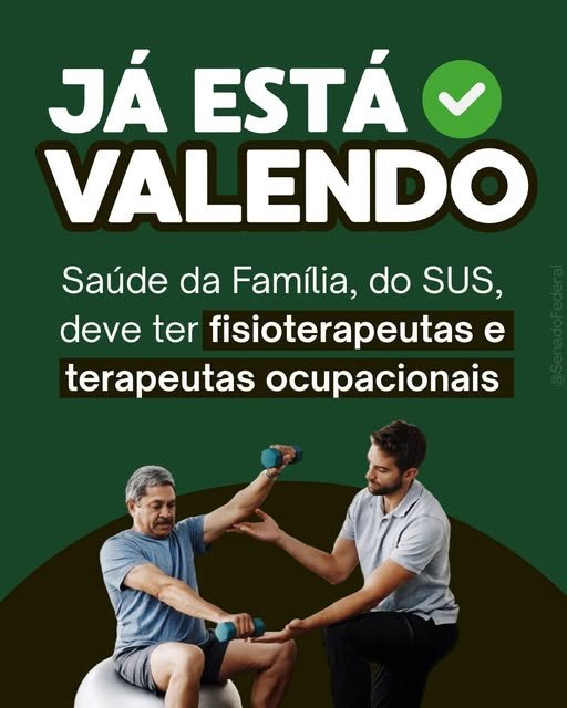 JÁ ESTÁ VALENDO Recentes 17 de outubro de 2025Paulo Jaskowiak ”FONTE: SENADO FEDERAL” A Lei 14.231, de 2021, inclui os fisioterapeutas e terapeutas ocupacionais na estratégia de Saúde da Família do SUS: https://bit.ly/Lei14231_2021