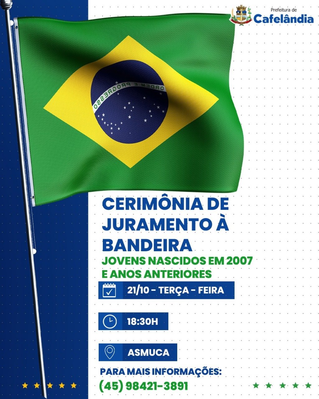 Participe da Cerimônia de Juramento à Bandeira no dia 21/10 (terça-feira), às 18h30, na ASMUCA.