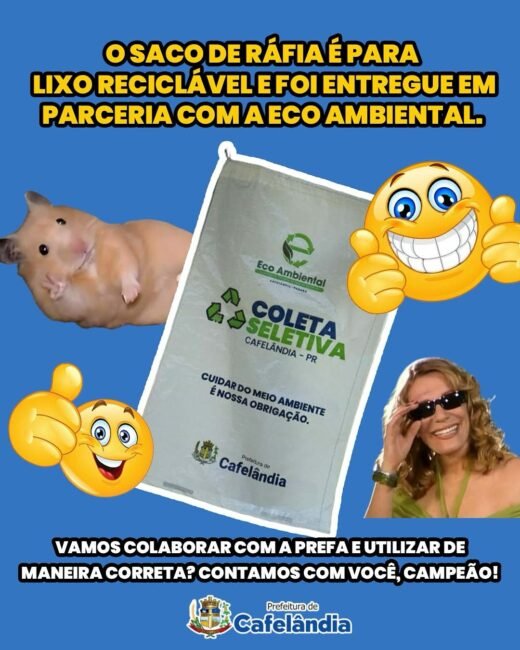 👉 Só lembrando: o saco é exclusivamente pra recicláveis.
