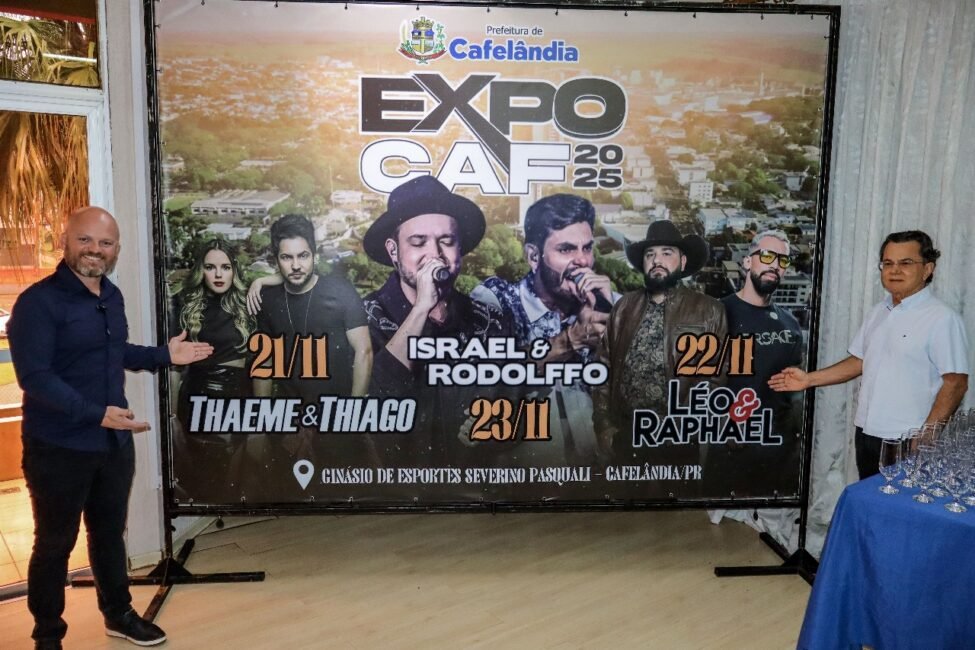 O prefeito Junior Motter destacou a importância da festa para Cafelândia e agradeceu às lideranças que colaboram para a realização do evento. “Quero agradecer ao nosso vice-prefeito pelo apoio, aos vereadores, a ACICAF que está com a gente neste momento e a todos que acreditam neste projeto. A EXPOCAF 2025 será um momento de lazer para as famílias, além de movimentar o comércio local e valorizar ainda mais a nossa cidade”, afirmou.
