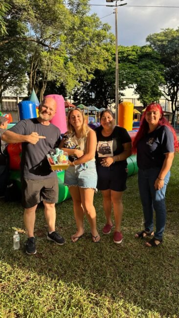 Dezenas de brinquedos infláveis foram espalhados pelo parque, garantindo diversão para a criançada. Além disso, pipoca e algodão doce completaram o clima festivo, proporcionando momentos de lazer e convivência entre as famílias.