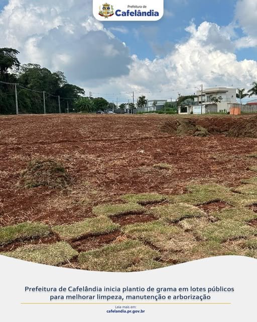A Prefeitura de Cafelândia, por meio da Secretaria de Agricultura e Meio Ambiente, iniciou o plantio de grama em lotes públicos para melhorar a limpeza, reduzir o crescimento de mato e facilitar a manutenção desses espaços.