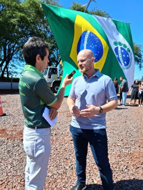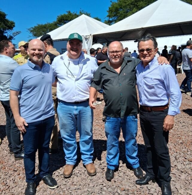 O prefeito de Cafelândia, Junior Motter, e o vice-prefeito, Odair, prestigiaram o evento ao lado de autoridades regionais. Em seu discurso, Junior Motter agradeceu ao governador Ratinho Junior pelos investimentos destinados ao município e por todo o apoio que tem garantido avanços estruturais e melhorias significativas na mobilidade regional.
