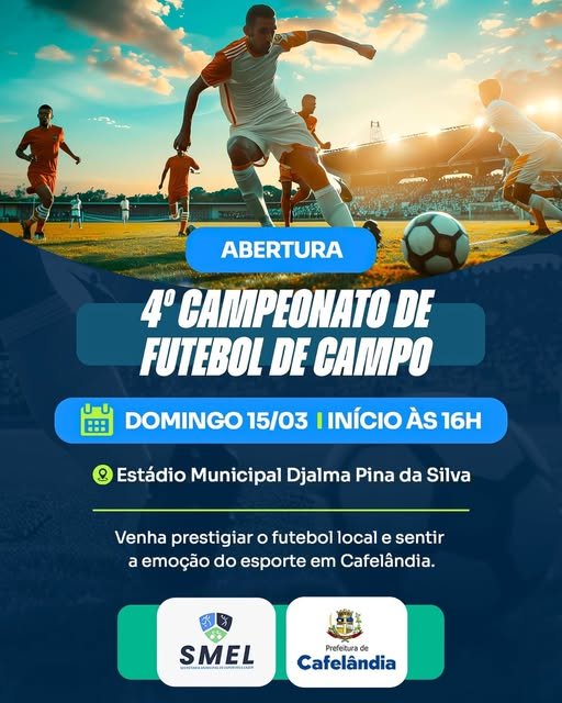 Neste domingo (15/03), às 16h, acontece a abertura do 4º Campeonato Municipal de Futebol de Campo, no Estádio Municipal Djalma Pina da Silva.