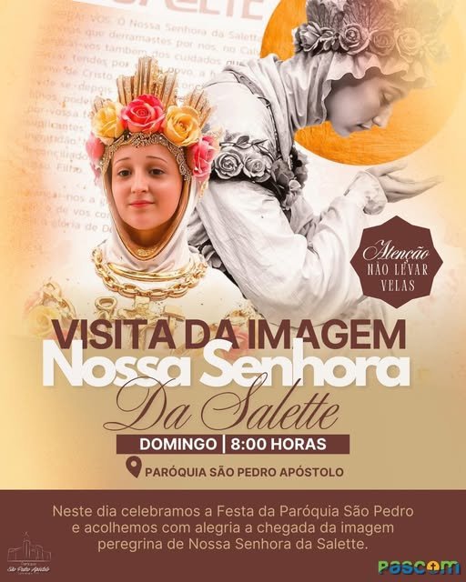 Teremos a chegada da imagem peregrina de Nossa Senhora da Salette 🙌🏻💙.